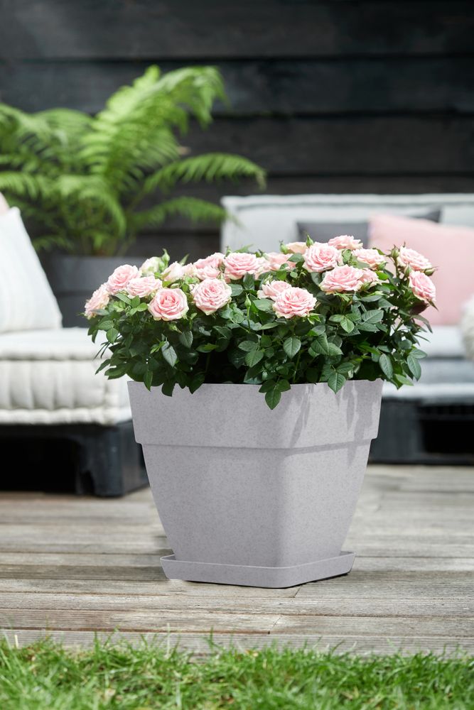 Con amore per la natura Amore per le piante significa ovviamente anche amore per la natura. Perciò puoi dare per scontato che questo vaso è stato creato tenendo a mente la natura. Per essere precisi è fatto di plastica riciclata e completamente riciclabile, ed è prodotto con l'energia eolica dei nostri mulini a vento. Questi si trovano proprio dietro l'angolo (insieme alla casa per i nostri 2 milioni di api - che non costruiscono vasi, ma fanno molto bene alla natura!). La nostra dedizione verso il mondo, la natura e le persone è